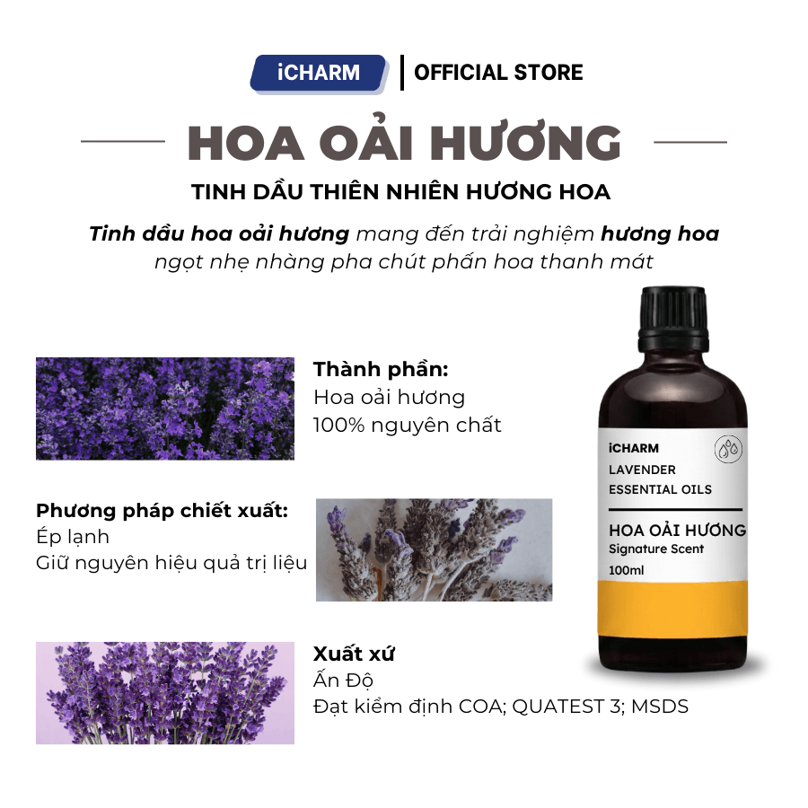 Tinh dầu hoa oải hương mang đến hương thơm dịu nhẹ, thanh thoát và tinh tế. Hương thơm tinh dầu mang lại cảm giác thư thái và bình yên. Hiúp làm dịu tâm trạng và tạo ra một không gian yên bình và thư giãn.