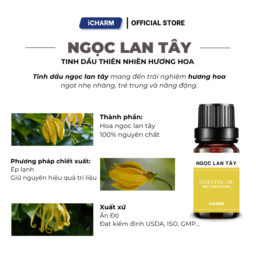 Tinh dầu ngọc lan tây có hương thơm đặc trưng, nữ tính và quyến rũ. Mùi hương của tinh dầu như một sự kết hợp hoàn hảo giữa hương hoa ngọt ngào và một chút hương nồng nàn. Gợi lên cảm giác ấm áp và tinh tế.