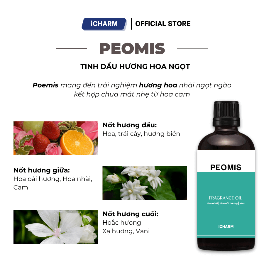 Hương thơm của tinh dầu Lancome Peomis là một sự kết hợp hoàn hảo giữa sự tươi mới, nữ tính và ấm áp. Lancome Peomis tạo ra một trải nghiệm hương thơm đặc biệt và khó quên. Mang đến sự tinh tế và sang trọng cho không gian.